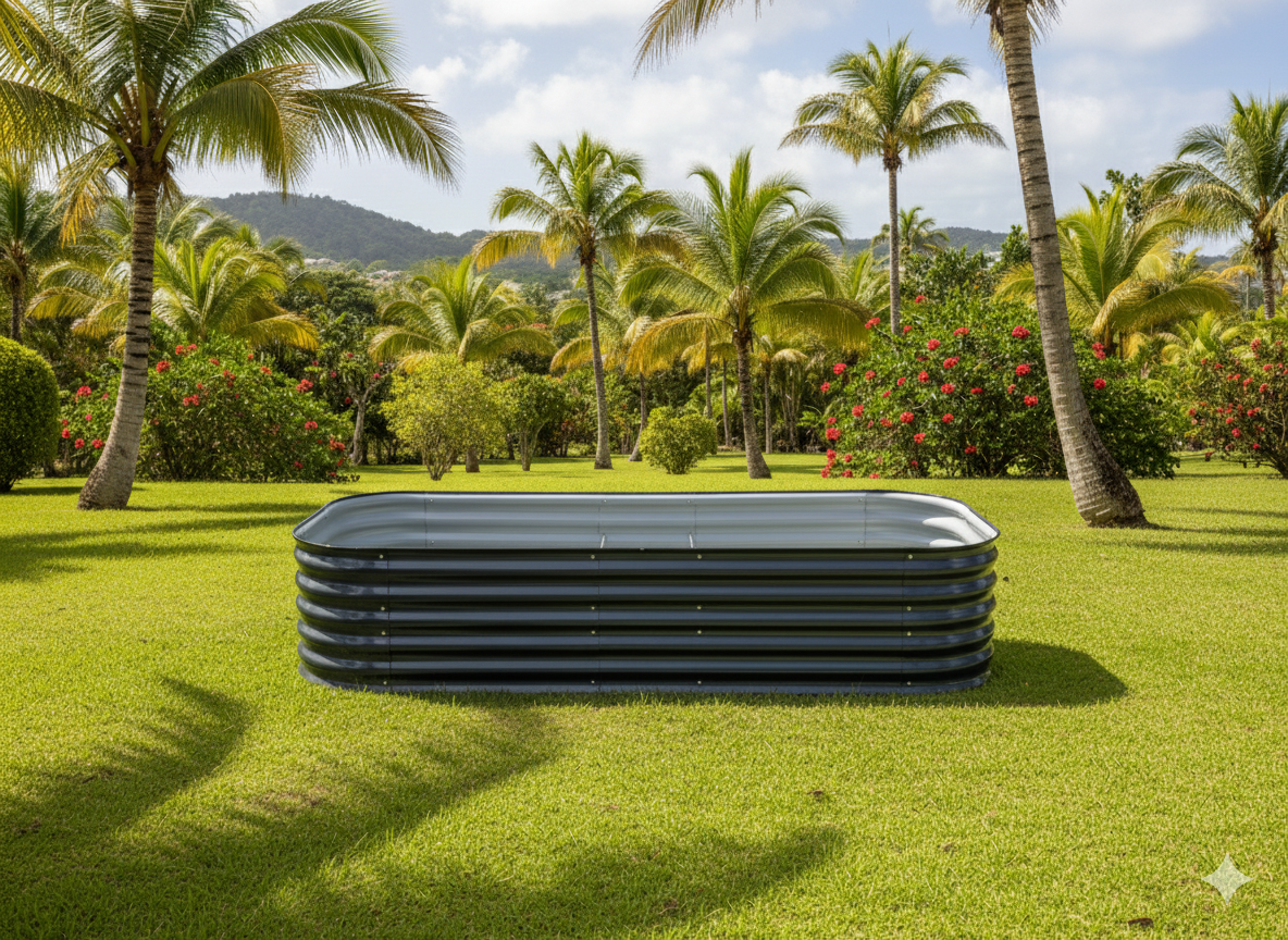Avec ses 210 × 90 × 45 cm, le bac ICHALI M6.0 est l’un des plus spacieux de la gamme. Construit en acier galvanisé powder coat, il est conçu pour durer et résister au climat tropical. Sa largeur et sa longueur permettent de cultiver une grande variété de légumes et fruits.